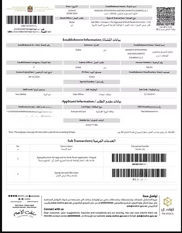 • يشترط النقر على الأستعلام عن تصريح العمل.